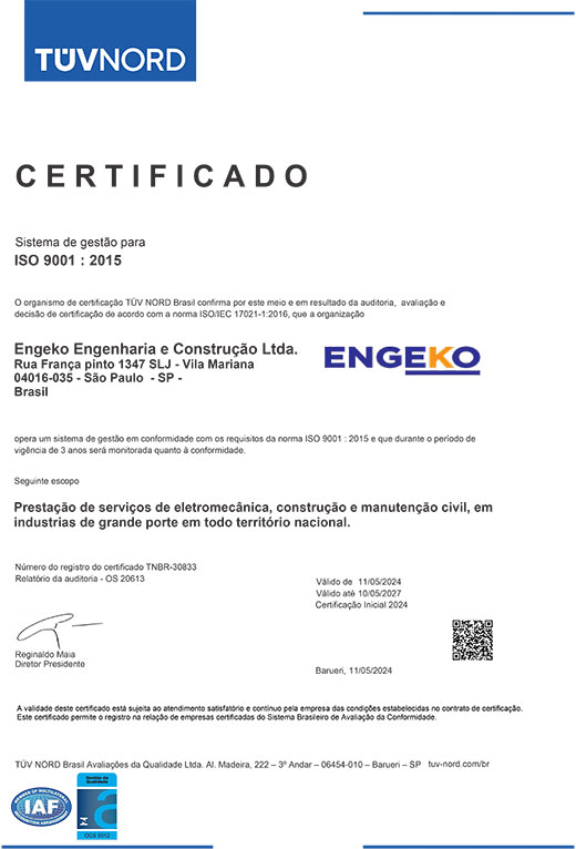 Com a convicção de que o entendimento do negócio em si e a mútua confiabilidade entre as partes são necessários para atingir o êxito total, a ENGEKO, busca primeiramente, o conhecimento das necessidades de seus clientes, para só então delimitar os rumos a serem seguidos, com soluções sob medida, comprometidas com qualidade, custos e prazos.